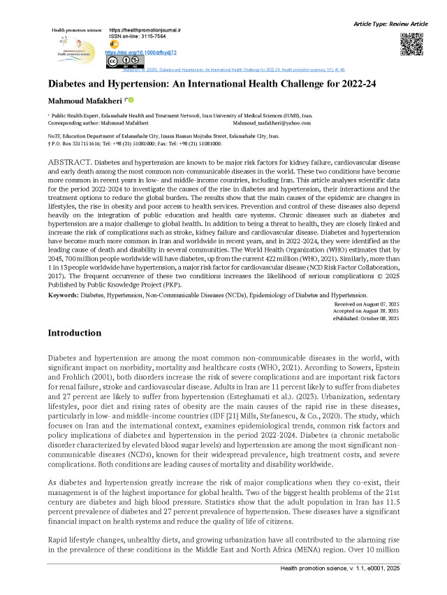 • Diabetes and Hypertension: An International Health Challenge for 2022-24 Diabetes: Global Challenge
